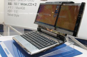 До конца года он должен появиться в продаже в Японии. В закрытом состоянии ноутбука второй экран располагается позади первого. Когда же ноутбук открыт, экраны можно раздвинуть в стороны, вдвое увеличив полезную площадь. Dual Display PC основан на процессоре AMD Athlon Neo MV-40, работающем на частоте 1,6 ГГц. У него имеется 4 Гбайт оперативной памяти, беспроводные интерфейсы 802.11n и Bluetooth 2.0, а также телевизионный тюнер.