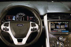 Слева и справа от спидометра расположены экраны с индикацией состояния автомобиля и мультимедийных систем, а в центральной стойке — сенсорный экран с настраиваемым интерфейсом. Автомобили Ford, оборудованные системой Sync, станут еще и передвижными точками доступа Wi-Fi. С точкой доступа внутри машины пассажиры смогут выходить в Интернет с нескольких устройств одновременно. Соединение, как поясняют в компании, защищено от постороннего доступа паролем