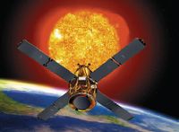 Отсюда спутнику предстоит перейти на постоянную круговую геосинхронную орбиту на высоте 36000 км с наклоном 28,5°. Такая орбита позволит почти круглые сутки держать Солнце в поле зрения обсерватории. Связь с Землей обеспечивается двумя остронаправленными антеннами, а скорость передачи данных со спутника может доходить до 150 Мбит/с — порядка 1,5 Тбайт в сутки. В истории NASA еще не было научных спутников с такой пропускной способностью. Задачей обсерватории является наблюдение за магнитными полями, атмосферой и излучением Солнца. Основной поток данных будет выдавать комбинированный атмосферный телескоп AIA. Он состоит из четырех отдельных телескопов, снимающих поверхность Солнца в нескольких ультрафиолетовых диапазонах, наблюдению которых с Земли мешает атмосфера.