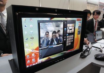 Для просмотра объемного изображения на экране ПК требуются пассивные стереоочки. Такие очки обычно имеют поляризованные стекла, которые внешне выглядят как темно-серые и, в отличие от активных, не требуют батарей и дешевле стоят. Видеосъемка выполняется с помощью двойной камеры, установленной наверху дисплея компьютера. На одном из двух демонстрационных ПК проводилась стереовидеозапись игры в гольф, на другом отображалась картинка «прямого эфира» с камеры.
