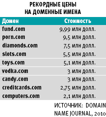 По некоторым сведениям, имя sex.com продано за 13 млн долл. Доменное имя sex.com продано за 13 млн долл. Это имя стало объектом купли-продажи не в первый раз. В 2006 году первоначальный владелец имени sex.com Гэри Кремен продал его за 12 млн долл. Компания, которая его приобрела, закончила заявлением о банкротстве. Какие еще имена способны приблизиться или побить рекорд sex.com? Есть мнение, что следующим на очереди идет имя internet.com. Компания QuinStreet, по некоторым сведениям, приобрела это имя ни много ни мало за 18 млн долл. еще в 2009 году.