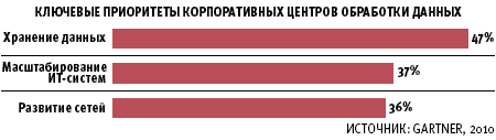 Рост объема данных, накопленных в корпоративных информационных системах, становится одной из главных проблем для крупных организаций. Две трети опрошенных аналитиками Gartner компаний заявили, что в 2011 году будут инвестировать в решения, связанные с хранением данных. В 2009 году большинство администраторов ЦОД было вынуждено сократить расходы на развитие, и, как следствие, сейчас предприятия столкнулись с проблемой устаревания своих ИТ-инфраструктур. Согласно результатам исследования, почти половина из них включила решения по хранению данных в список трех ключевых своих приоритетов. Кроме того, в него чаще всего попадали масштабирование существующих систем и развитие корпоративных сетей.