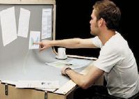 Традиционное рабочее место с компьютером делится на две рабочие поверхности: горизонтальную — стол, где располагается клавиатура, мышь или бумага для записей и вертикальную — экран компьютера. Принципы взаимодействия с этими двумя поверхностями резко различаются. Для рисования на экране используется мышь, а на бумаге — ручки или карандаши. Но даже если бы обе поверхности были сенсорными экранами, перемещение объектов между ними было бы затруднено из-за наличия резкой границы в виде прямого угла между двумя плоскостями. На кафедре компьютерных наук Рейнско-Вестфальского технического университета сконструировали единую сенсорную рабочую поверхность под названием BendDesk, соединив вертикальную и горизонтальную плоскости плавным переходом. Горизонтальная поверхность способна выполнять и функции обычного письменного стола. Для реализации всех функций взаимодействия используется три видеокамеры и два проектора. Поэтому изготовленный прототип пока довольно громоздок.