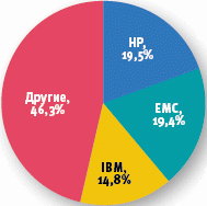 По оценкам аналитиков IDC, в третьем квартале общемировой объем продаж дисковых устройств хранения данных в денежном выражении вырос на 18,5% по сравнению с аналогичным периодом прошлого года и дошел до 7 млрд долл. При этом в физическом выражении их суммарный объем вырос на 65,2%, достигнув 4299 Пбайт. В 2009 году расходы на приобретение устройств хранения были снижены, и теперь организациям приходится наверстывать упущенное. Самый быстрый рост происходит в сегментах подключаемых к сети устройств хранения (Network Attached Storage, NAS) и сетей хранения (Storage Area Network, SAN) на базе iSCSI. Основным фактором роста является внедрение технологий виртуализации серверов, и значительная доля роста приходится на устройства NAS верхнего уровня. Спрос на устройства хранения растет также из-за постоянного повышения объемов данных, все чаще содержащих изображения и видео. Первое и второе места на рынке дисковых систем делят Hewlett-Packard и EMC. Доходы HP за квартал выросли на 22% по сравнению с прошлогодними, до 1,359 млрд долл., а EMC — на 28,3%, до 1,351 млрд долл.
