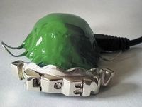 ЭЙЗЕН ЧЕЙСИН, СТУДЕНТКА дизайнерско-технического факультета нью-йоркской художественной школы Parsons, придумала MP3-плеер, который носится во рту, подобно декоративным съемным коронкам grillz, популярным у рэпперов. Свое изобретение она назвала Play-a-Grill. Она воспользовалась деталями от готового MP3-плеера и небольшим виброприводом, упаковав их в корпус, отлитый по слепку собственной верхней челюсти. Плеер имеет четыре кнопки, которые можно нажимать языком. Наушников у плеера нет — он воспроизводит музыку, превращая ее в вибрации, которые, передаваясь по костям черепа, звучат прямо внутри ваших ушей. Гул низких частот плеер не передает — вибрации можно только слышать, но не ощущать.