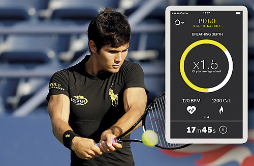 Рубашка Polo Tech Shirt, выпущенная под маркой Ralph Lauren, снабжена встроенными датчиками, измеряющими частоту пульса, дыхания, а также уровень стресса и расход энергии. К рубашке подключается еще одно устройство с акселерометром и гироскопом, собирающее дополнительные данные о направлении и скорости движений. Все данные отправляются на смартфон по каналу Bluetooth. Теннисист Маркос Хирон первым испытает на себе возможности рубашки Polo Tech Shirt. Предполагается, что он будет надевать ее на тренировках, а собранные данные подскажут ему, как по ходу игры лучше менять стратегию, стиль и дыхание. Рубашку для Ralph Lauren сконструировали и изготовили в компании OMSignal. В ноябре компания приступит к выпуску таких рубашек под своей маркой.