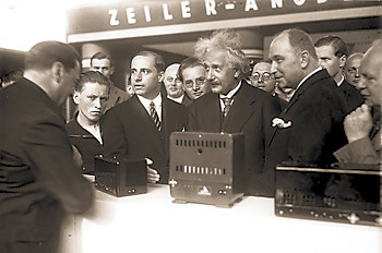 Телевидение пришло на выставку в 1928-м, хотя в те времена на ней продолжало доминировать радио. На одной из ранних фотографий мы видим, как Альберт Эйнштейн инспектирует радиоприемники, представленные на выставке. Выдающийся ученый выступил с речью на открытии «Седьмой большой выставки немецкой радиотехники и фонографов».