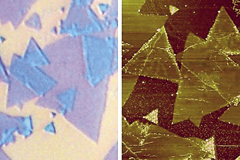Микросхемы, в которых для переноса данных используется свет, а не электричество, потребляли бы гораздо меньше энергии, чем нынешние. Из трех основных компонентов оптических схем — светоизлучатели, модуляторы и детекторы — первые сложнее всего в изготовлении. Один из перспективных источников света для оптических чипов — сульфид молибдена, полупроводник, проявляющий отличные оптические свойства при размещении слоем толщиной в один атом. Исследователи из Массачусетского технологического института готовят к публикации доклад с описанием нового метода изготовления светоизлучателей из MoS2 с настраиваемой длиной волны, что является необходимым требованием для оптоэлектронных микросхем. Два слоя MoS2 размещают на кремниевой подложке; верхний слой повернут относительно нижнего, и угол поворота определяет длину волны излучаемого света. Из-за дополнительного слоя интенсивность излучения уменьшается, но остается достаточной для практического применения и большей, чем у других светоизлучателей.