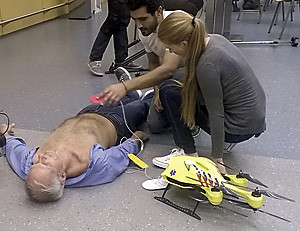 В Делфтском техническом университете сконструирован прототип трехвинтового беспилотника, способного за несколько минут прибыть по звонку в «скорую», доставив дефибриллятор к человеку с остановкой сердца. Дрон снабжен веб-камерой, с помощью которой люди под дистанционным руководством медиков смогут проводить реанимационные мероприятия. По словам конструкторов, беспилотник отыскивает пострадавшего по сигналу мобильного телефона вызывающего. Аппарат может лететь со скоростью около 100 км/ч, неся груз до 4 кг. Стоить дрон скорой помощи будет 15 тыс. евро. В Европе остановку сердца переживают около 800 тыс. человек, и выражается надежда на то, что беспилотники смогут помогать многим из них.