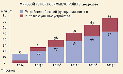 Появление новых производителей, новых устройств и повышение интереса пользователей приведет к быстрому росту мирового рынка электронных аксессуаров, полагают аналитики IDC. В 2015 году в мире будет продано 45,7 млн таких устройств, что на 133,4% больше, чем в 2014-м, а в 2019 году объем продаж достигнет 126,1 млн устройств.