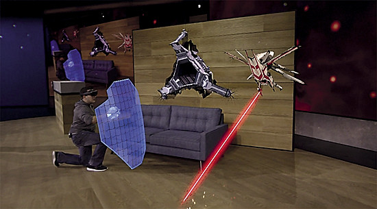 Для демонстрации возможностей шлема HoloLens в Microsoft разработали экспериментальную игру под названием Project XRay, в которой виртуальные роботы пробивают настоящие деревянные стены и карабкаются по мебели, стоящей в комнате игрока. Игру показали на пресс-конференции, проведенной корпорацией в Нью-Йорке. На сцене установили диван и пару стен. Сотрудник Microsoft в шлеме HoloLens и с игровым манипулятором сражался с роботами, превращая манипулятор то в оружие, то в щит. При этом виртуальные роботы, как пояснил докладчик, учитывают реальное расположение предметов в комнате и соответствующим образом меняют свои действия. Изображение транслировалось на большой экран. В первом квартале 2016 года Microsoft планирует выпустить набор инструментов для разработки программ для HoloLens. Он будет стоить 3 тыс. долл. — гораздо дороже, чем аналогичный набор для шлема Oculus Rift (350 долл.), и купить его можно будет только по заявке. Шлем HoloLens, подчеркнул исполнительный вице-президент Microsoft Терри Майерсон, является самостоятельным устройством: ему не нужны ни кабели, ни наушники, ни подключение к компьютеру.