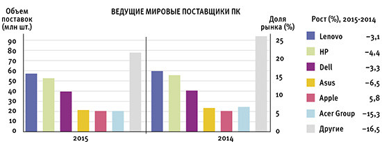 Согласно отчету, опубликованному IDC, за четвертый квартал 2015 года объем поставок ПК составил 71,9 млн штук, — на 10,9% меньше, чем за аналогичный период предыдущего года.