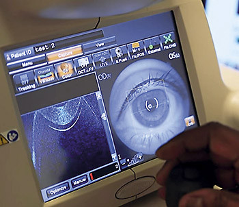 Один из способов поиска признаков этих заболеваний заключается в изучении внутренней части глаза, находящейся напротив хрусталика, — области глазного дна. Делать это можно как напрямую, с помощью офтальмоскопа, так и путем цифрового сканирования глазного дна. Еще одним методом неинвазивного трехмерного сканирования сетчатки является процесс оптической когерентной томографии.