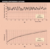 Волновое сопротивление (а) и затухание (б) витой пары в зависимости