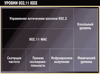 Протокол 802.11 описывает физический и MAC-уровни беспроводной сети. Стандарт предусматривает один уровень MAC и три различных физических уровня.