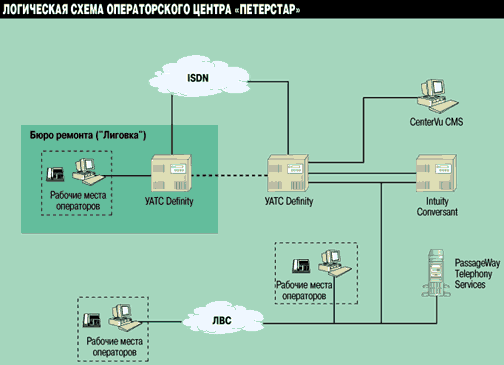 Рисунок 1. Операторский центр "ПетерСтар" разнесен между двумя территориями.