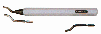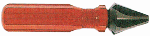 Если обрабатываемые кромки имеют сложную форму, вместо напильника проще воспользоваться приспособлением, у которого рабочая головка (с режущими поверхностями, аналогичными развертке) имеет свободную посадку. За счет этого она всегда устанавливается под нужным углом к кромке. Таким образом, кромку достаточно обработать по контуру, прижимая к ней рабочую головку с небольшим усилием, — и все заусенцы будут удалены. Особенно удобно применение такого инструмента при зачистке краев кабельных каналов из алюминия или пластмассы.