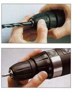 Быстрозажимные патроны применяют на дрелях и шуруповертах для снижения затрачиваемого на замену сменного инструмента времени — конструкция патрона позволяет отказаться от патронного ключа.
