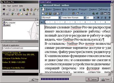 | Как у себя дома. NetBus Pro позволяет параллельно выполнять несколько функций — в данном случае это копирование экрана и работа с командной строкой. |