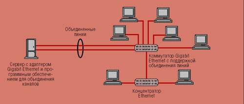 IEEE создала рабочую группу 802.3ad по объединению (или агрегированию) каналов (Link Aggregation Task Force, LATF). Ее цель состоит в определении того, как можно одновременно использовать имеющиеся каналы Gigabit Ethernet между двумя коммутаторами или между коммутатором и сервером как один канал. Это позволило бы многократно увеличить пропускную способность между устройствами.