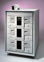 Сразу две новинки были представлены в категории DLT-устройств. Это автозагрузчик DLT-818 c приводом DLT-8000, а также оснащенные теми же приводами модульные DLT-библиотеки SureStore 20, 40, 60. Цифры в названии библиотеки обозначают их емкость в кассетах. Как можно легко подсчитать, один модуль рассчитан на 20 кассет. Купив модель начального уровня, в будущем ее можно без труда нарастить — в этом суть модульного подхода.