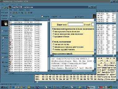 Собранные пакеты отображаются в окне сниффера в виде списка с указанием MAC-адресов получателей и отправителей, типа пакета, типа протокола, IP-адресов и номеров портов. Содержимое любого пакета можно просмотреть в виде шестнадцатеричного кода и текста. Это не всегда удобно, поэтому собранную информацию можно сохранить в виде файла и обработать с помощью утилиты PeepNet, которая сортирует пакеты по адресам и представляет их содержимое в удобочитаемом виде.