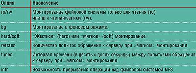 Основные опции монтирования NFS перечислены в Таблице 2.