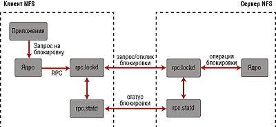 Демон rpc.lockd, функционирующий как на клиенте, так и на сервере, предназначен для блокировки файлов, тогда как демон rpc.statd (также исполняемый на сервере и клиенте) ведет статистику блокировок на случай необходимости их автоматического восстановления при крахе сервиса NFS.