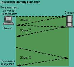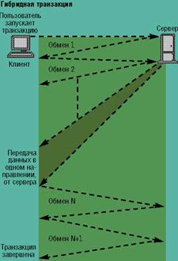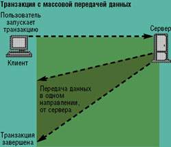 В двухзвенном клиент-серверном мире картина трафика при транзакциях может быть намного сложнее и описываться как пинг-понг, массовая передача данных в одном направлении или гибридная.