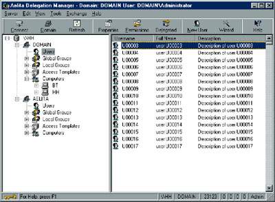 Аelita Delegation Manager (DM) 2.0 от Aelita Software Group создает Windows 2000-подобную структуру каталога и делегирует административные задачи с использованием существующих групп и доменов Windows NT. Программное обеспечение создает иерархическую административную структуру, а также распределяет и делегирует административные привилегии местным администраторам и персоналу справочной службы.