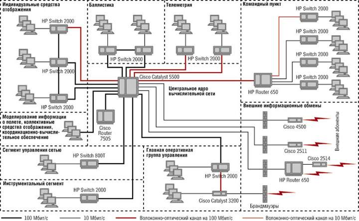 Рисунок 1. Схема вычислительной сети Центра управления полетами.