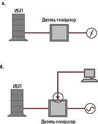 Вообще, не стоит забывать, что критические ситуации, в частности проблемы с электропитанием, имеют и юридические последствия. В первую очередь, это относится к перебоям в электроснабжении. С точки зрения системы бесперебойного электропитания пропажа напряжения на входе в систему (или выход параметров электроснабжения за рамки допустимых) — всего лишь одна из возможных ситуаций, реакцией на которую является переход в автономный режим. Когда напряжение на вводе нормализуется, система благополучно возвращается в обычный режим работы. Однако такой «двоичный» подход не всегда оправдан. В качестве примера мы рассмотрим решение по бесперебойному питанию с использованием ИБП и дизель-генератора.