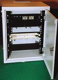 Новый шкаф (или, лучше сказать, шкафчик) с запирающейся дверцей имеет компактные размеры — ширину 10" («половинный» конструктив 19" и высоту 8U. В шкафу размещается панель типа 100 на 50 пар для телефонии, наборная панель для модулей RJ-45 (S110 производства Siemens/Corning, она не требует применения ударного инструмента при монтаже), кабельный организатор, панель с двумя розетками электропитания и полка для активного оборудования, где размещается оборудование, выполненное в дизайне для малого офиса серии OfficeConnect 3Com, и аналогичное ему. Шкаф имеет съемную заднюю стенку и кабельный ввод сверху и снизу. Это позволяет реализовать различные варианты монтажа, а также устраивать «стек» из двух шкафов (в принципе, шкафов может быть и больше, но в этом случае эффективнее будет «большое» решение). Шкаф не имеет определенного «верха» и «низа», благодаря чему его можно устанавливать так, чтобы дверца открывалась направо или налево (по ряду соображений, петли, в отличие от «больших» шкафов, сделаны фиксированными). При монтаже и сертификации мини-системы сертифицированным инсталлятором с соблюдением всех правил на нее распространяется стандартная 15-летняя гарантия «АйТи-СКС».