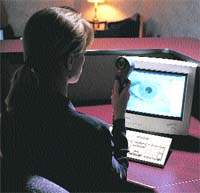 PC Iris от IriScan предназначен для защиты компьютеров, сети и электронной коммерции. Исходное изображение, так называемая запись IrisCode, представляет собой фрагмент кода размером 512 байт и может храниться в базе данных, на смарт-карте или аналогичном устройстве. Пользователь должен взять формирователь изображения радужной оболочки (он устанавливается как периферийное устройство), посмотреть в линзы с расстояния 7,5—10 см и нажать кнопку для начала процесса идентификации (см. Рисунок 2). Как утверждается, идентификация обычно занимает одну-две секунды.
