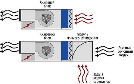Идея естественного охлаждения нашла воплощение также в кондиционерах Liebert серии MiniMate EX. В обычном режиме эти устройства используют воздушное охлаждение, а в режиме естественного охлаждения (он также активизируется при снижении внешней температуры) воздух извне поступает через фильтр интенсивной очистки (дополнительный модуль) непосредственно в помещение при помощи вентилятора (см. Рисунок 3). В этом режиме компрессор кондиционера не работает, система переходит в энергосберегающий режим. Если датчики показывают, что внутренние условия не требуют, чтобы система работала на полную мощность, то микропроцессор устройства поднимает порог перехода в режим естественного охлаждения.