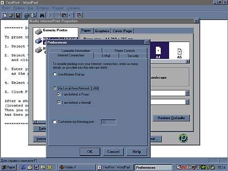 Помимо выполнения функции адресной книги центральный сервер также обеспечивает доставку распечатываемого документа в тех случаях, когда ПК адресата выключен, или же не подключен к Internet, или же на нем выключен InternetPrint Receiver. В этом случае система предлагает сохранить задание на печать на центральном сервере, чтобы затем, при подключении отсутствующего пользователя, немедленно перенаправить его на принтер. Если получатель отключен в течение слишком длительного времени, то задание будет отправлено ему по электронной почте. При желании задание можно сразу отправить по почте. В этом случае центральный сервер не будет задействован, так как клиентская часть InternetPrint сама может отправлять почту по SMTP (адрес электронной почты получателя автоматически считывается с центрального сервера). Задание приходит по электронной почте в виде письма с прикрепленным исполняемым файлом PrintMe.exe. Если его запустить, то он обратится к клиентской части InternetPrint для распечатки документа на принтере (если она отключена, то будет временно запущена).