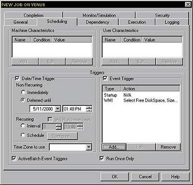 ActiveBatch 3.0 — многофункциональная и простая в использовании система. Графический пользовательский интерфейс предлагает различные виды как для новичков, так и для специалистов, а программные эксперты очередей и заданий упрощают планирование и выполнение заданий. Не зависящая от языка сценариев, она может применяться также для подачи заданий с помощью таких языков, как XLNT, Perl, VBScript и Java. Система планирования ActiveBatch позволяет выполнять задания в зависимости от времени или события.