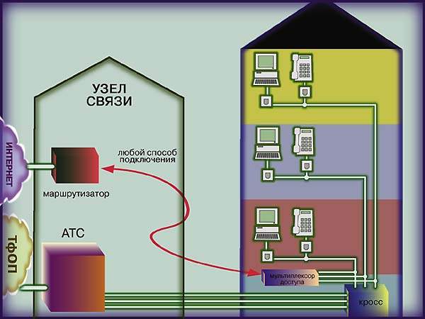 Рисунок 2. Использование выносного мультиплексора доступа xDSL.