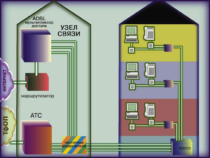 Рисунок 1. Использование ADSL для доступа в Internet.