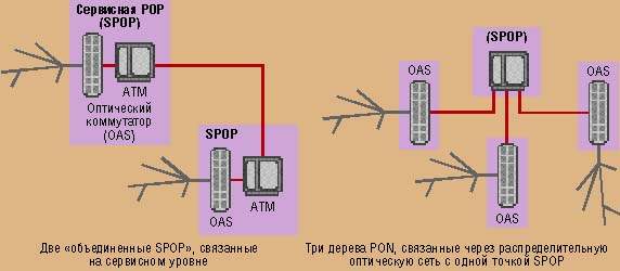 Рисунок 3. Модель альтернативных операторов местной связи для развертывания пассивной оптической сети требует создания сервисной точки присутствия для оптического кабеля альтернативного оператора с сетью провайдера оптовых услуг.