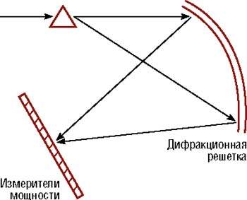 Использование дифракционной решетки — наиболее известный метод, применяемый для деления света на его компоненты (цвета). Параллельные линии на поверхности дифракционной решетки разделяют световой сигнал в оптический спектр. Как только сигнал разделен, мощность заданной длины волны может быть измерена путем установки детектора в месте максимальной концентрации света нужной длины волны.