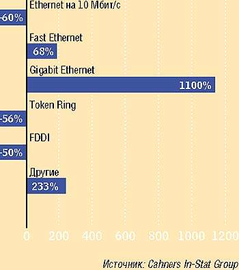 Хотя Gigabit Ethernet для настольных систем демонстрирует самые высокие темпы роста по сравнению со всеми остальными технологиями, не стоит рассчитывать на доминирование этой технологии локальных сетей раньше 2004 гг. Скорости шин ввода/вывода ПК станут расти по мере того, как в 2003 и 2004 г. шины PCI-X и IB будут переноситься с серверов на рабочие станции. Хотя некоторые эксперты считают, что не существует приложений, способных стимулировать использование Gigabit Ethernet для связи с настольными системами, компании всегда будут стремиться приобрести максимальную пропускную способность за те же деньги, учитывая, что адаптерные карты и порты коммутаторов автоматически настраиваются на скорость передачи 10/100/1000 Мбит/с, поддерживают обратную совместимость и стоят 200 долларов и меньше — ситуация, аналогичная той, которая определила успех Fast Ethernet в 1997 г.