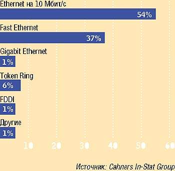 Новые топологии. В конце 2001 — начале 2002 г., скорее всего, появятся продукты на базе стандартов 10GbE и Infini Band (IB). Поскольку эти технологии с очень высокой пропускной способностью уже появились на горизонте и они не обеспечивают обратную совместимость с кабелями Категории 5, у заказчиков появится больше оснований устанавливать волоконно-оптическую проводку. Предполагается, что IB заменит существующие системы ввода/вывода (такие, как PCI и PCI-X), подобно тому, как слоты PCI вытеснили слоты ISA на системных платах. Кроме того, решения IB предназначены для применения во внешних коммутаторах для создания серверных кластеров на магистрали локальной сети, что приведет к очень широкому их применению. IB предусматривает спецификацию и на медную проводку, но не Категории 5. Таким образом, в большинстве случаев кабели будут оптическими, а не каким-либо новым типом медных.