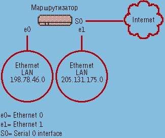 | Блокируй этот пакет. Как видно из рисунка, маршрутизатор используется для подключения двух сегментов Ethernet к глобальной сети. Устанавливать фильтр следует как можно ближе к источнику фильтруемой информации, т. е. в нашем первом примере список доступа желательно привязать к интерфейсу е0 |