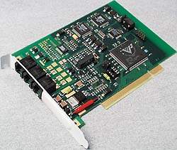 Шлюз iX-01 компании Vocord Telecom. В число разработок этой компании входит одноканальный шлюз для сетей IP-телефонии, который мы использовали в тестировании. Он представляет собой компьютерную плату, вставляемую в слот PCI (см. Рисунок 5). Это решение предназначено для домашнего применения и малых офисов. С его помощью можно не только организовывать голосовые шлюзы в сеть IP, но и создавать автоответчики с функциями голосовой почты, сервер для пересылки факсимильных сообщений через сети передачи данных и многое другое.