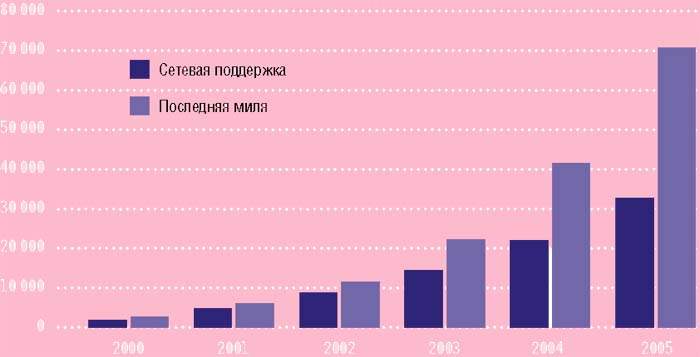 | Рисунок 2. Технология беспроводной оптики показала свою жизнеспособность во вспомогательных сетевых приложениях, однако сегодня она практически не применяется на последней миле доступа в сеть. Впрочем, в течение ближайших пяти лет беспроводная оптика будет шире использоваться в этой области: операторы, отвергавшие технологию несколько лет назад, пересматривают свое отношение к ней. |