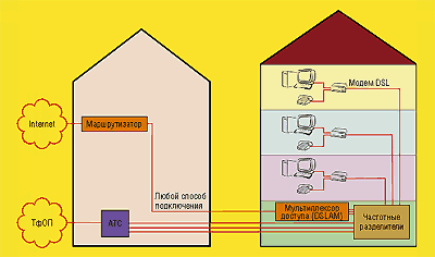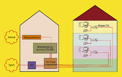 | Рисунок 2. Структура систем коллективного широкополосного доступа по телефонным линиям. |