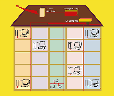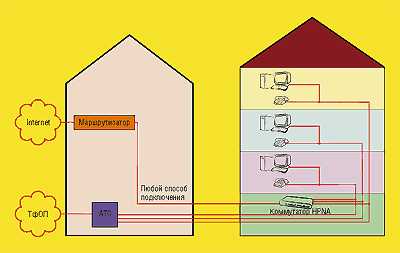 Этот способ имеет особенную ценность для альтернативных операторов связи. Российская действительность такова, что попытки провайдера Internet договориться с оператором местной телефонной связи об использовании абонентской проводки часто оказываются безрезультатными. Построить же свою абонентскую сеть в рамках одного здания или жилого комплекса вполне реально даже в условиях ограниченного бюджета, особенно в случаях, когда выбирается топология «шина».