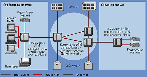 | Округ Seminole, шт. Флорида, имеет сеть, объединяющую все общественные здания с использованием сетевой технологии ATM непосредственно до рабочего места. Сеть гарантирует пропускную способность, достаточную для передачи видеопотоков между судами и тюрьмами. |