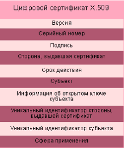 | Рисунок 2. Цифровой сертификат подтверждает личность владельца открытого ключа. Он содержит критически важную информацию, на основании которой третья сторона может подтвердить личность держателя сертификата, а также подлинность стороны, выдавшей сертификат. |